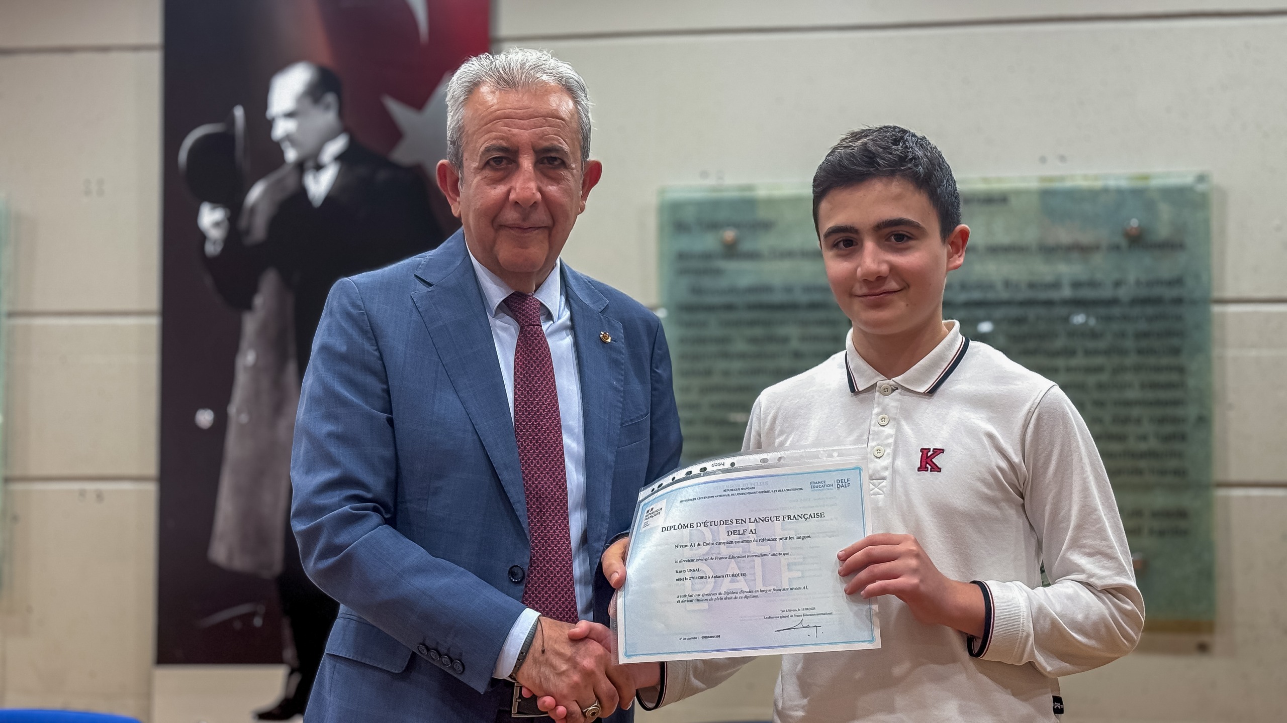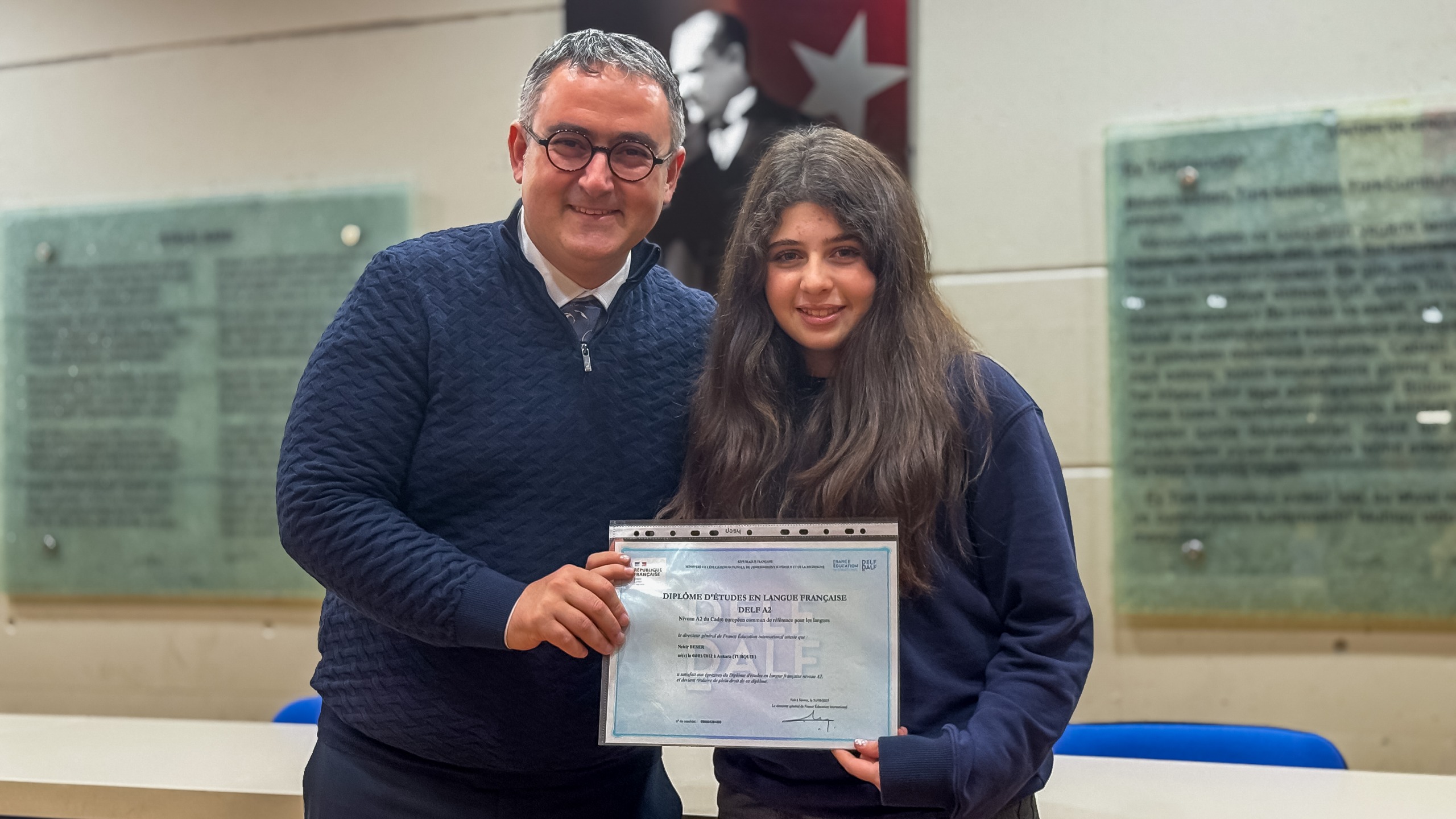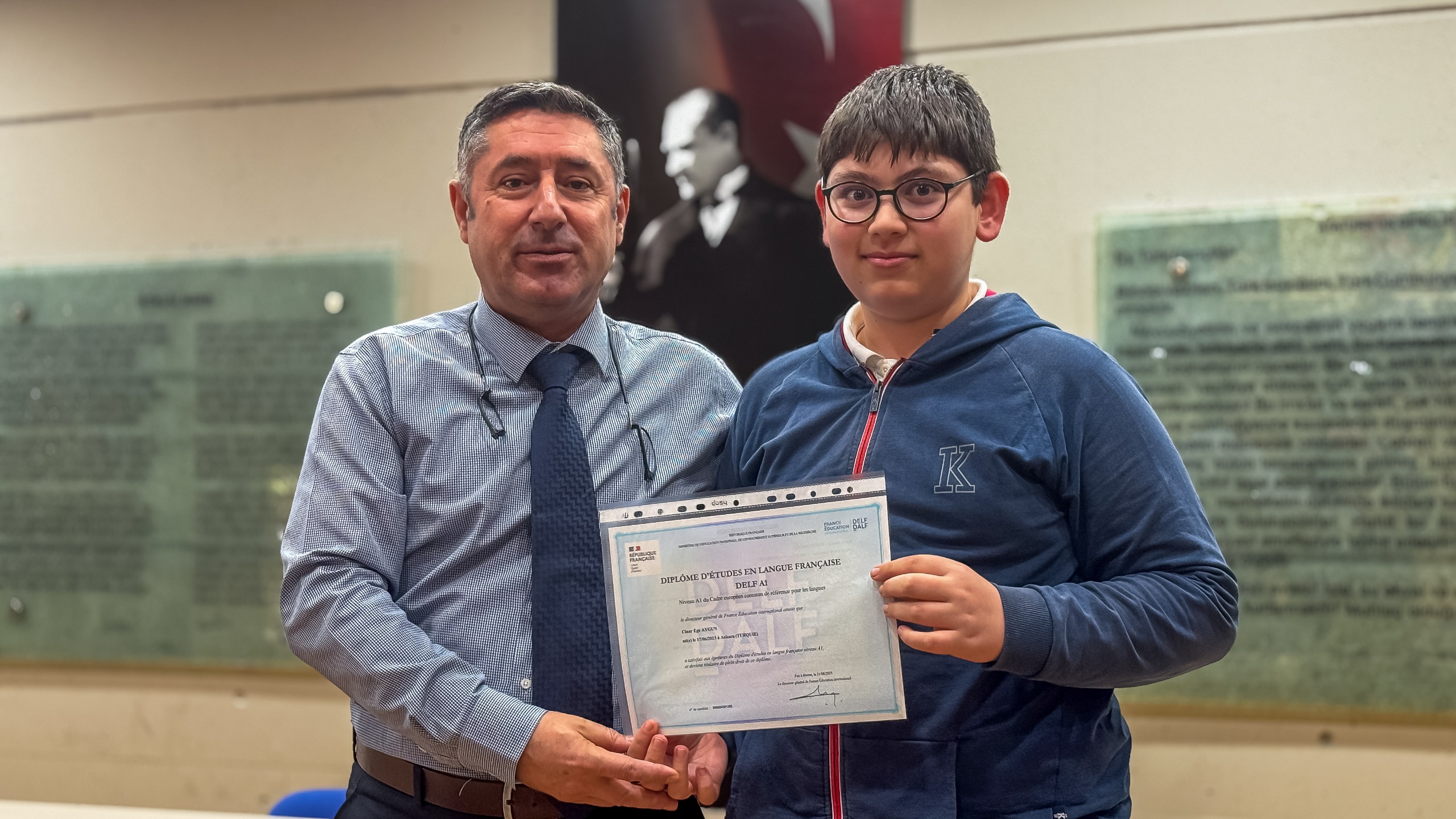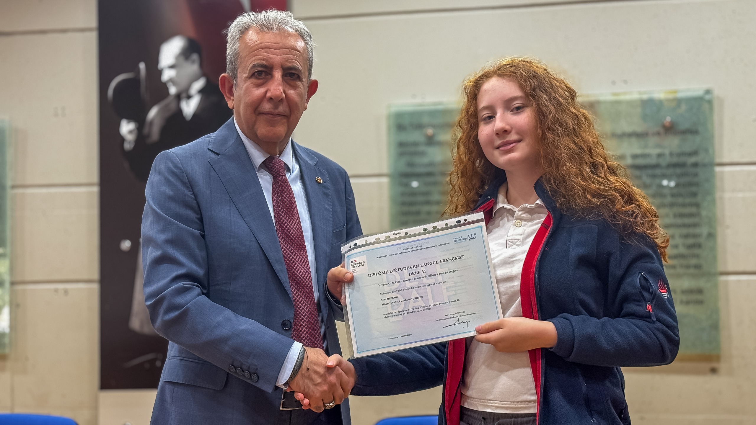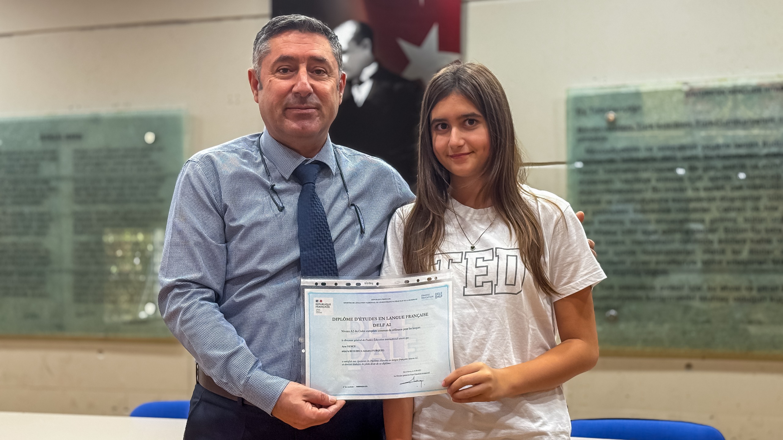 Öğrencilerimiz 2024-2025 eğitim-öğretim yılında Avrupa Dilleri Ortak Çerçeve Programı’na göre hazırlanan DELF (Diplôme d’Etudes en Langue Française) sınavına A1 - A2 – B1 seviyelerinden katıldılar. Öğrencilerimiz sınavdaki başarılarıyla Fransızca yazılı ve sözlü dil becerilerini belgeleyerek, uluslararası geçerliliği olan dil diploması almaya hak kazandılar.