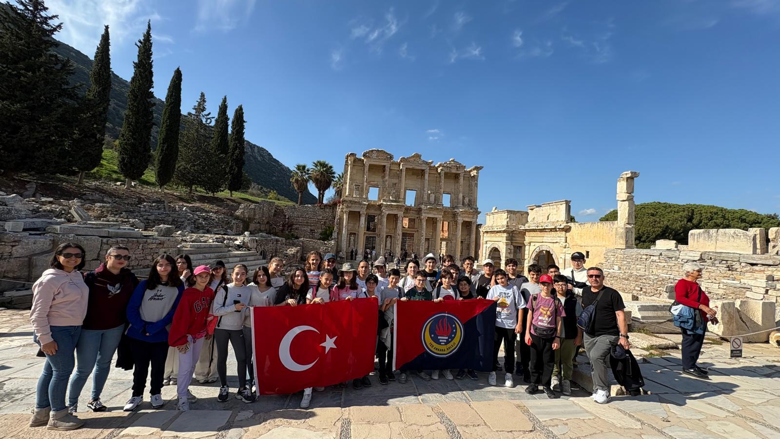 Ortaokul Matematik Zümresi tarafından İzmir Şirince Nesin Matematik Köyü'ne özel bir gezi düzenlendi. 8-10 Kasım 2025 tarihleri arasında organize edilen geziye 7. ve 8. sınıf seviyesinden toplam 32 öğrencimiz ve beraberinde 3 öğretmenimiz katıldı. Üç gün süren gezide Ali Nesin ve diğer eğitmenlerle matematik dersleri yapıldı, derslerden arta kalan zamanlarda Şirince Köyü, Efes Antik Kenti, Dijital Deneyim Müzesi ve İllüzyon Müzesi ziyaret edildi. Gezi süresince öğrencilerimiz eğlenerek, öğrenerek ve akademik farkındalıklar kazanarak muhteşem üç gün geçirdiler.