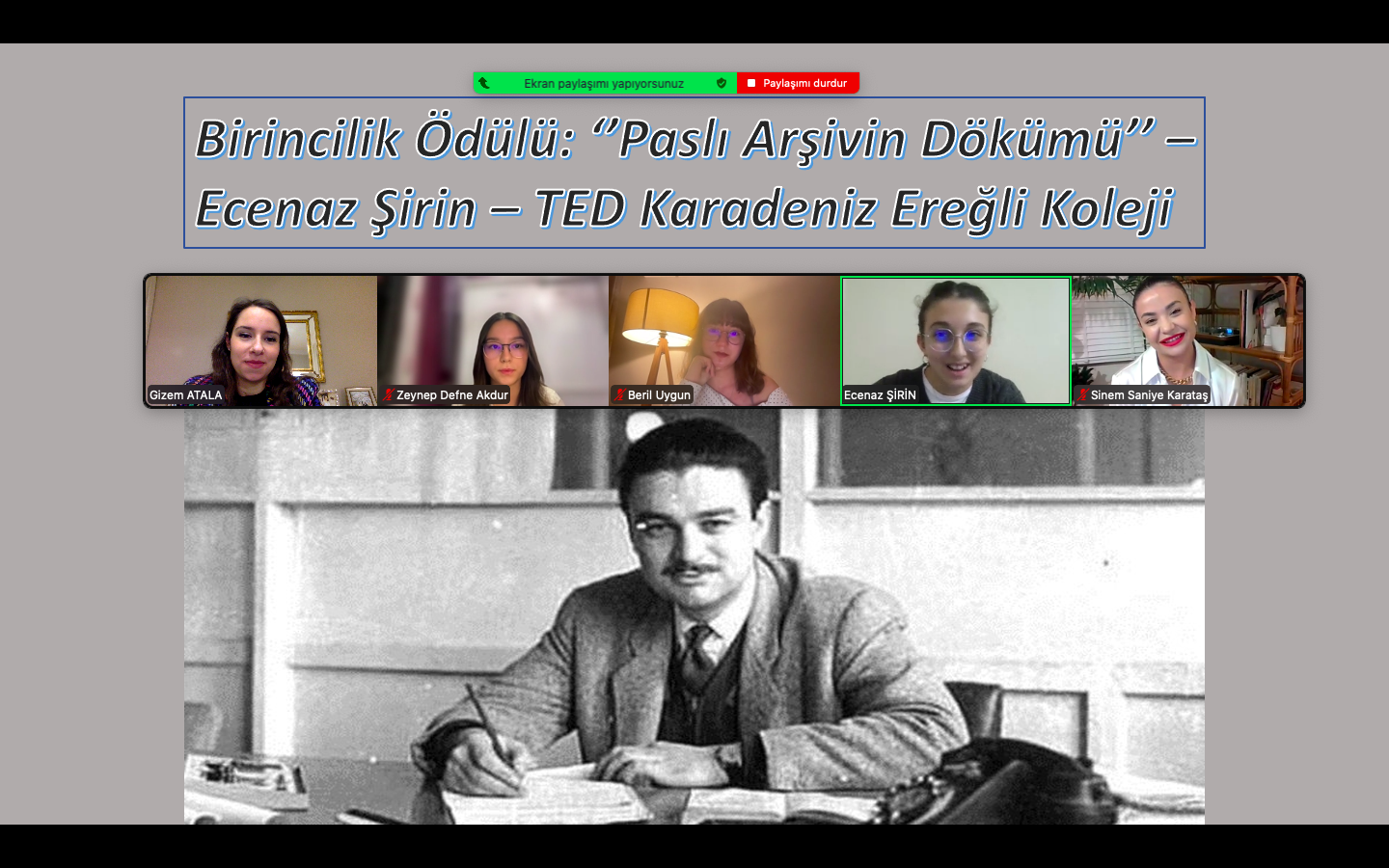 1.lik Ödülü: “Paslı Arşivin Dökümü”, Ecenaz ŞİRİN, TED Karadeniz Ereğli Koleji
