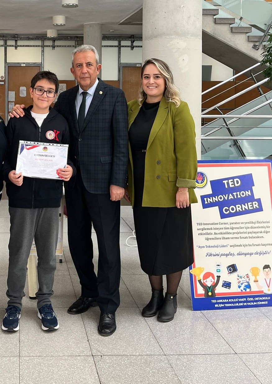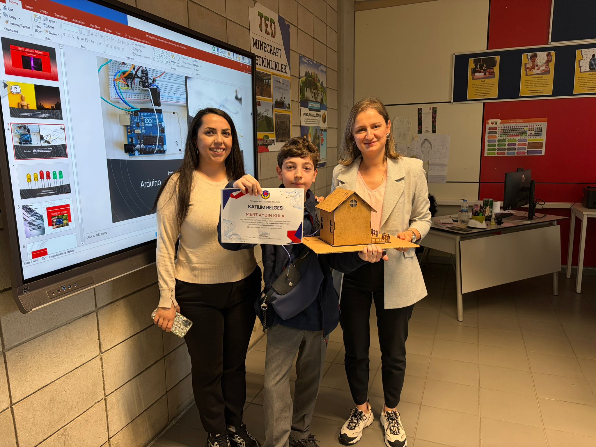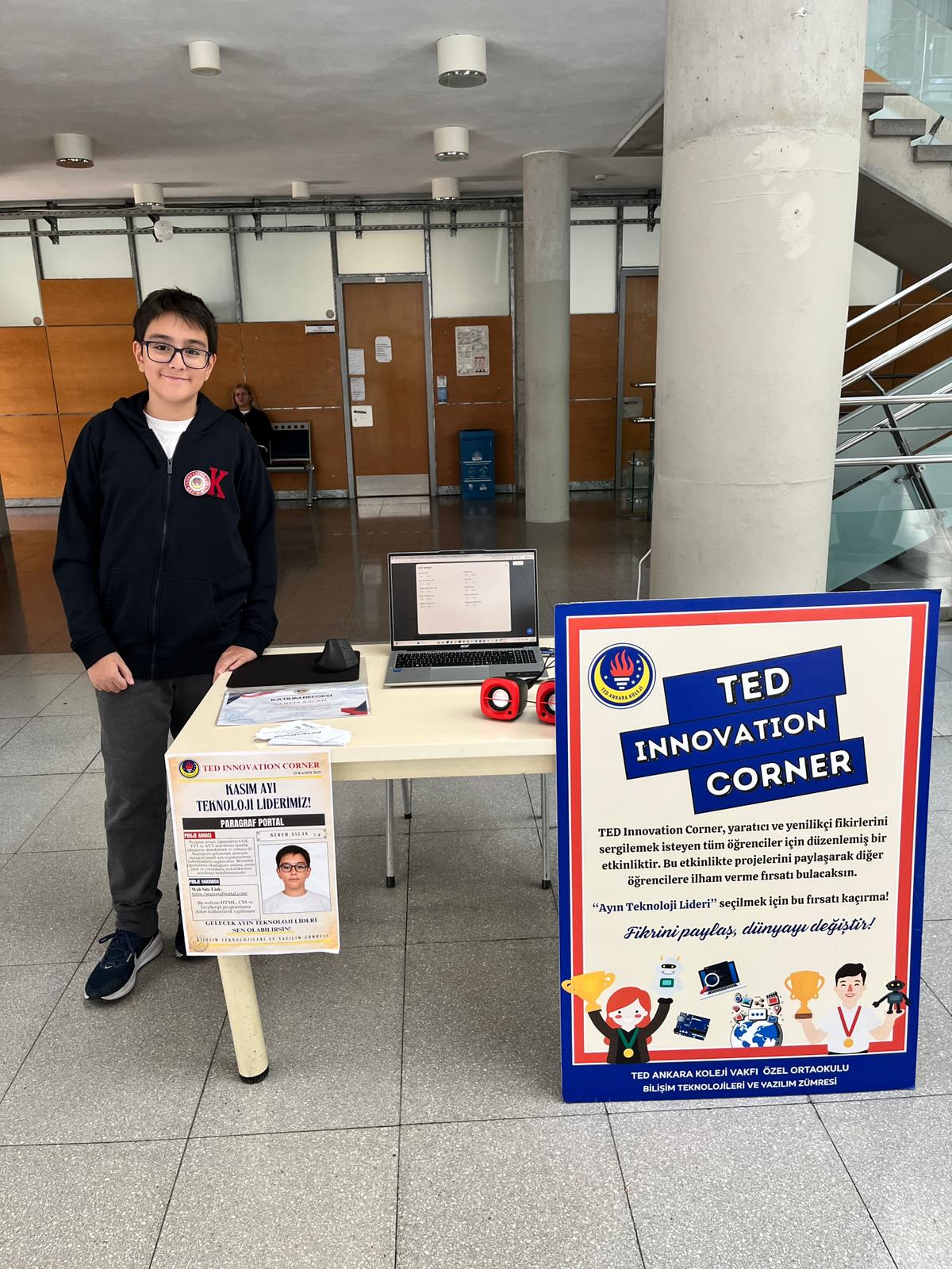 Hour of Code Week etkinlikleri kapsamında, yenilikçi fikirleriyle öne çıkan öğrencilerimizin projelerini tanıttığı “TED Innovation Corner” etkinliği büyük ilgi gördü. İlham verici çalışmalarıyla dikkat çeken öğrencilerimiz, “Ayın Teknoloji Lideri” olarak seçildiler.