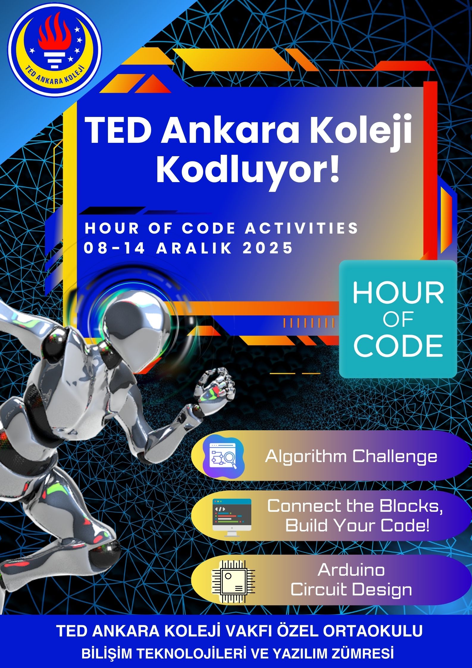 Birçok ülke ile eş zamanlı olarak 8–14 Aralık tarihleri arasında gerçekleştirilen Kodlama Haftası'nı, öğrencilerimizin programlama becerilerinin geliştirildiği çeşitli etkinlikler ile kutladık.
