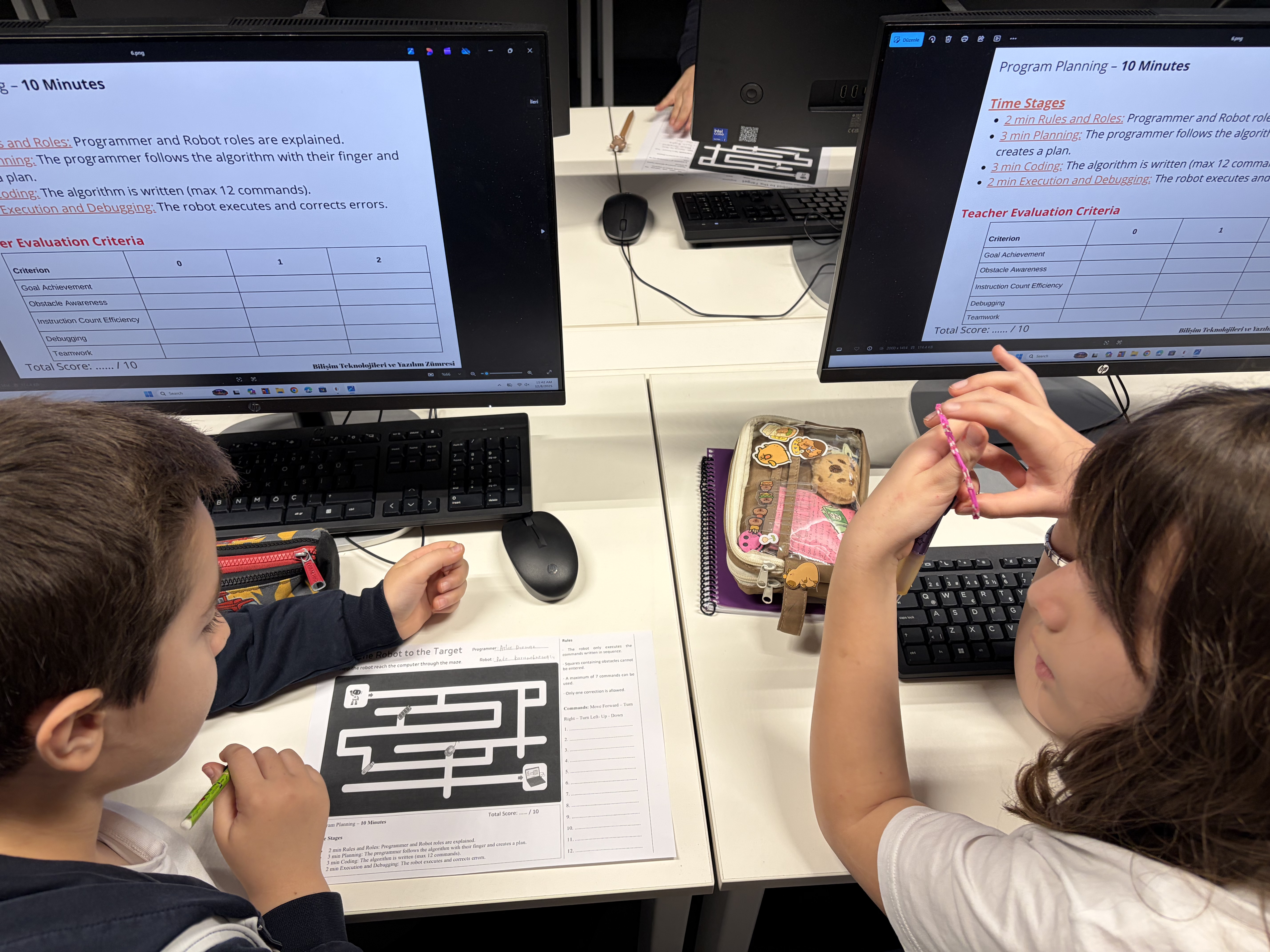 Bilişim Teknolojileri ve Yazılım derslerimizde öğrencilerimiz, kodlama ve tasarım odaklı çalışmalar gerçekleştirdiler. 5. sınıf öğrencilerimiz, “Algorithm Challenge” etkinliğinde algoritma kavramını adım adım keşfederek verilen problemi ekip arkadaşlarıyla çözmeye çalıştılar. 6. sınıf öğrencilerimiz, “Connect the Blocks, Build Your Code” etkinliği kapsamında blok tabanlı kodlama platformunda çalışmalar gerçekleştirdiler. 7. sınıf öğrencilerimiz ise “Arduino Circuit Design” çalışmasıyla elektronik tasarım ve programlamayı birleştirerek proje geliştirme fırsatı elde ettiler.