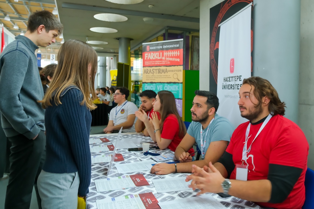 Üniversitelerin stantlarını gezerek temsilcilerden akademik programlar, kadrolar, çift ana dal, yan dal, taban puanlar, tercih ve sıralama, burslar, sosyal ve fiziksel olanaklar hakkında detaylı bilgi aldılar.