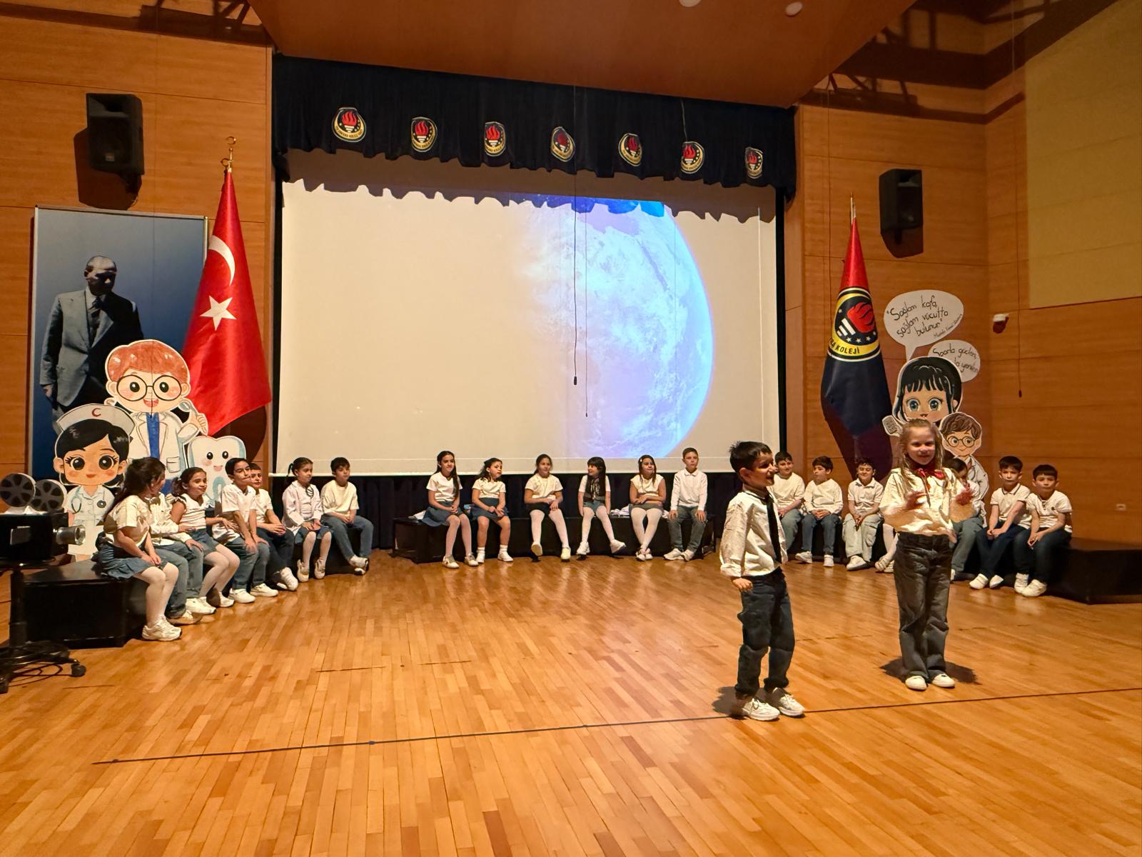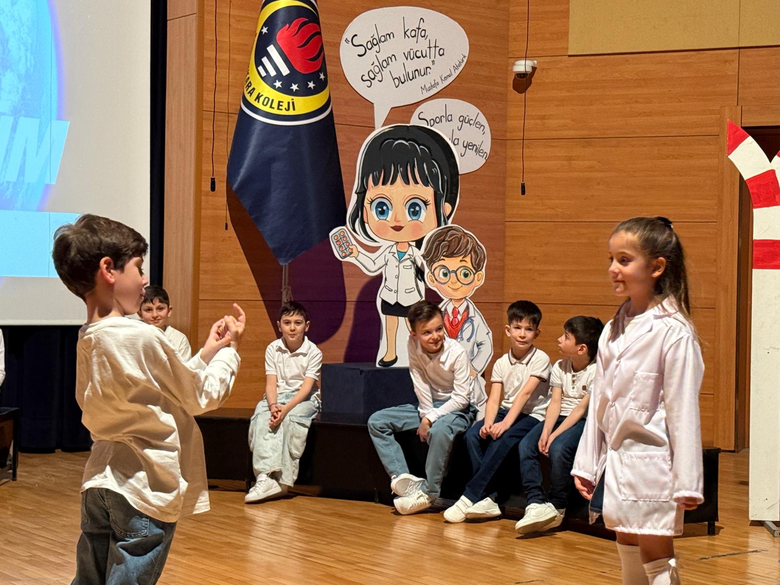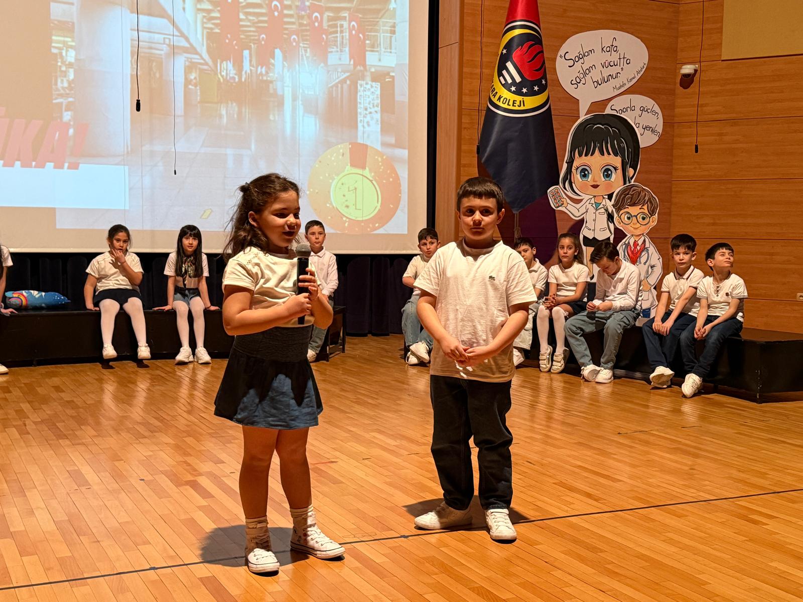 İlkokul 2. sınıf öğrencilerimiz, disiplinlerarası yaklaşımla hazırladıkları “Haberiniz Sağlık Olsun” adlı sınıf sunumlarıyla ailelerine sağlıklı yaşamın önemini anlattı. Etkinlikte öğrenciler; sağlıklı beslenme, hijyen ve aktif yaşam konularını içeren anlatımlarıyla büyük beğeni topladı.